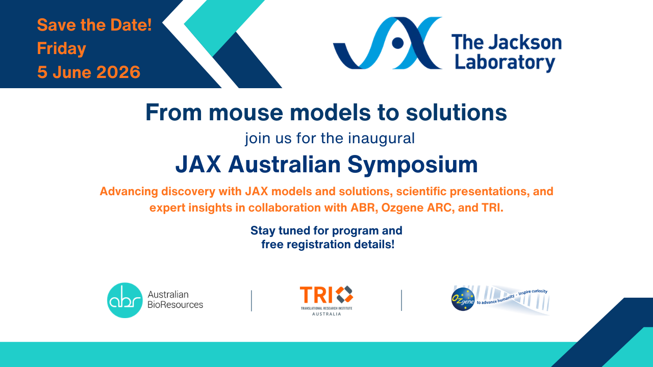 1st JAX Australia Symposium Advancing discovery in partnership with ABR, Ozgene ARC, and TRI. ABR, TRI, Ozgene ARC are excited to co-host the inaugural JAX Australian Symposium, bringing together Australia’s […]